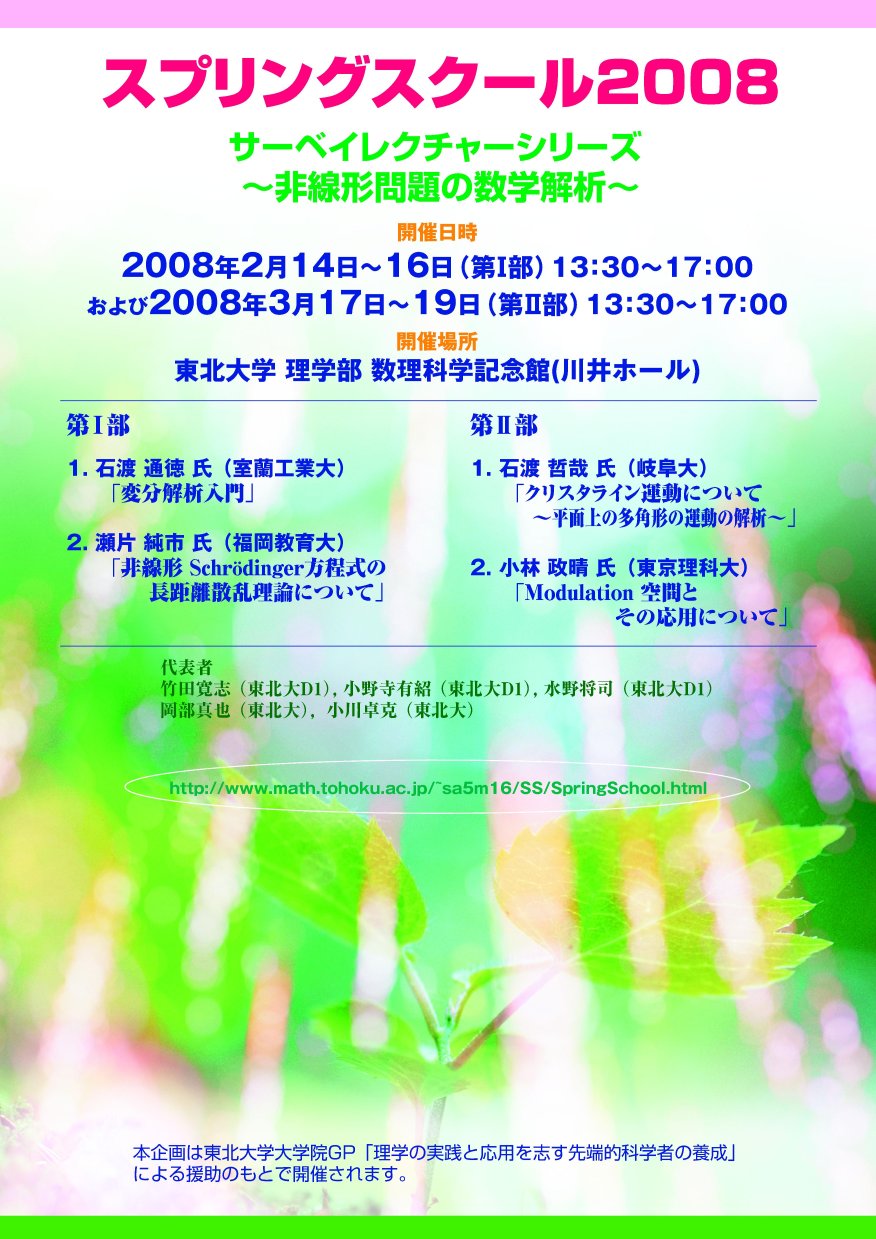 スプリングスクール2008は, 無事終了致しました. 御参加頂いた皆様に感謝申しあげます.